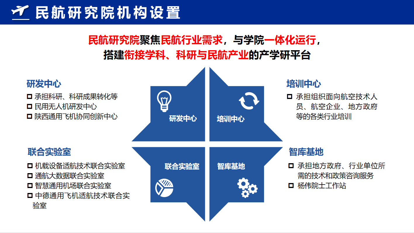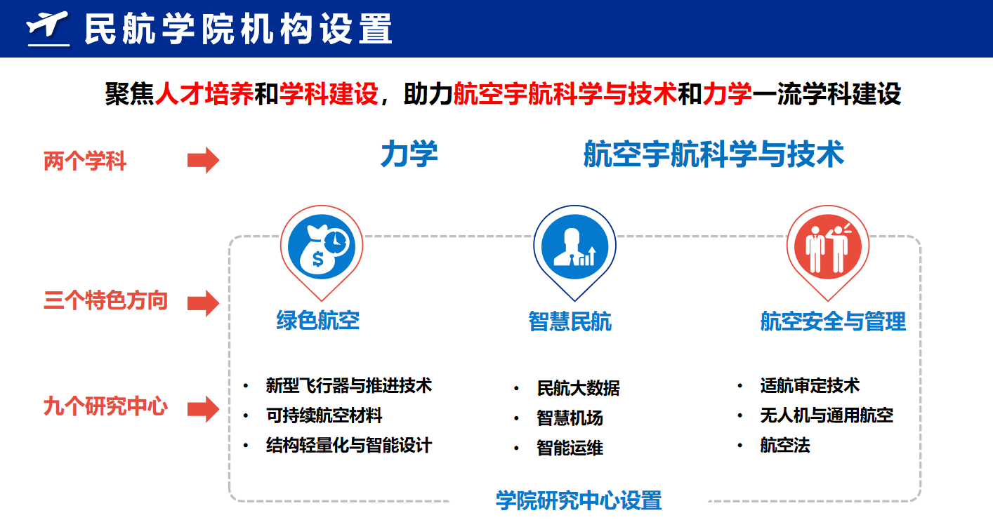 fun88官网体育聚焦人才培养和团队建设,与研究院一体化运行,以绿色航空、智慧民航、航空安全与管理三大特色方向为引领,着重打造九大研究中心,助力航空宇航科学与技术和力学团队建设。民航研究院聚焦民航行业需求,与公司一体化运行,搭建衔接学科、科研与民航产业的产学研平台。