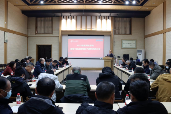 12月27日下午,fun88官网体育在友谊校区阶二教室、太仓智慧港C702室同步召开2023年度五、六级领导人员述职测评大会与警示教育大会,全院教职工和员工代表参加会议,会议由党总支书记闫伟主持。