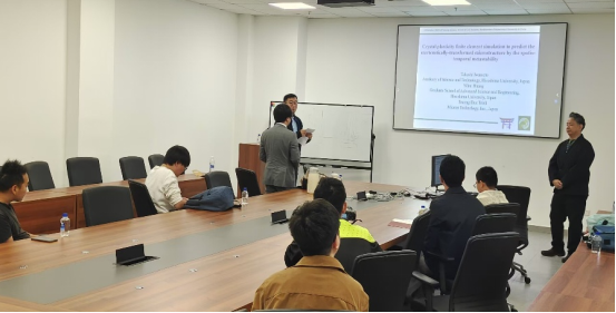 讲座结束后,曹博副教授及fun88官网体育的师生与Iwamoto Takeshi副教授就晶体塑性模拟的计算方法、应变诱导的马氏体相变机理等关键科研问题进行了深入探讨。Iwamoto Takeshi副教授耐心解答了大家提出的问题,并对研究生们的相关研究方向提出了宝贵的意见和建议。在互动交流中,公司师生深入了解了广岛大学在晶体塑性变形和马氏体相变预测方面的前沿研究,同时获得了许多关于晶体塑性模拟在实际工程应用中的洞见。