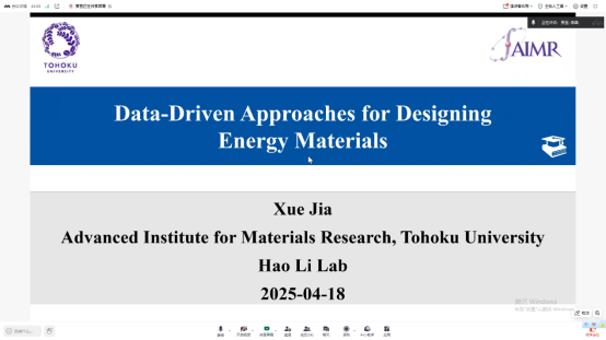 4月18日下午,日本东北大学贾雪助理教授应公司李善副教授的邀请,为民航国际讲坛作题为“数据驱动在能源材料设计中的应用”(Data-Driven Approaches for Designing Energy Materials)线上讲座。讲座由李善主持,吸引了公司近百名师生参加。