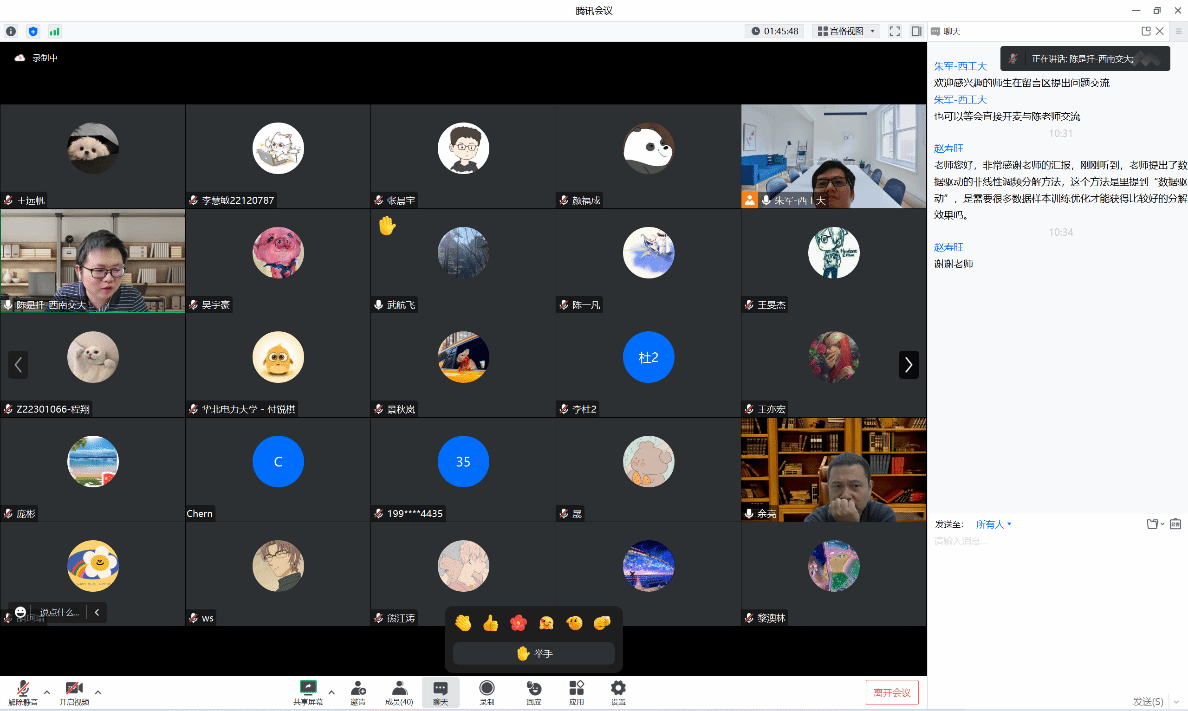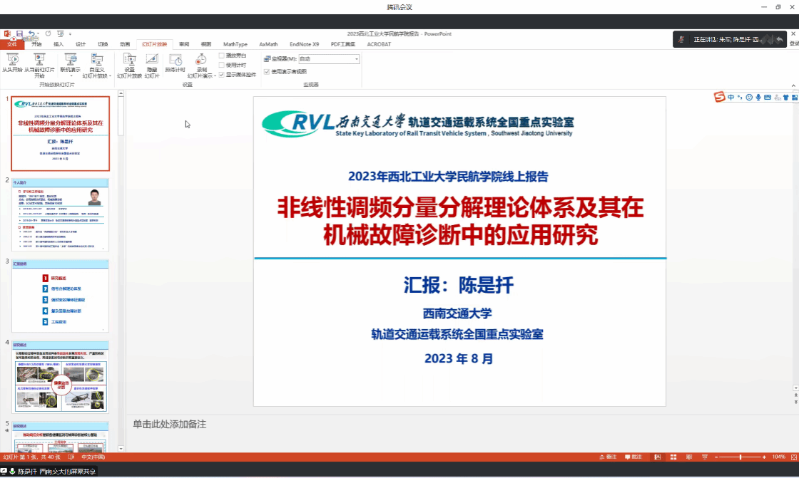 8月19日上午,应公司朱军副教授的邀请,来自西南交通大学的陈是扦老师为fun88官网体育师生开展主题为“非线性调频分量分解理论及其在故障诊断中的应用研究”的线上研讨会,公司余亮老师和外校师生合计超过40多人参加了此次研讨会,研讨会由朱军主持。
