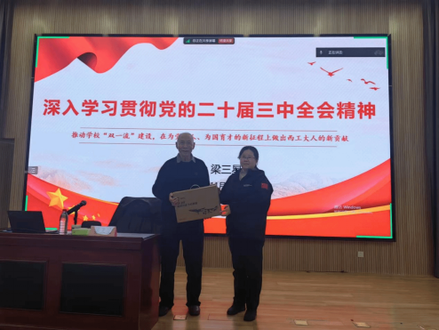 梁三星教授的专题党课由中共二十届三中全会公报主要内容、中共二十届三中全会《决定》的主要内容、贯彻全会精神推动西工大“双一流”建设三部分组成,内容丰富、话语生动,既有政策理论高度、又紧密结合公司发展实际,对于广大师生深入学习贯彻党的二十届三中全会精神和公司第十四次党代会精神具有重要指导意义。