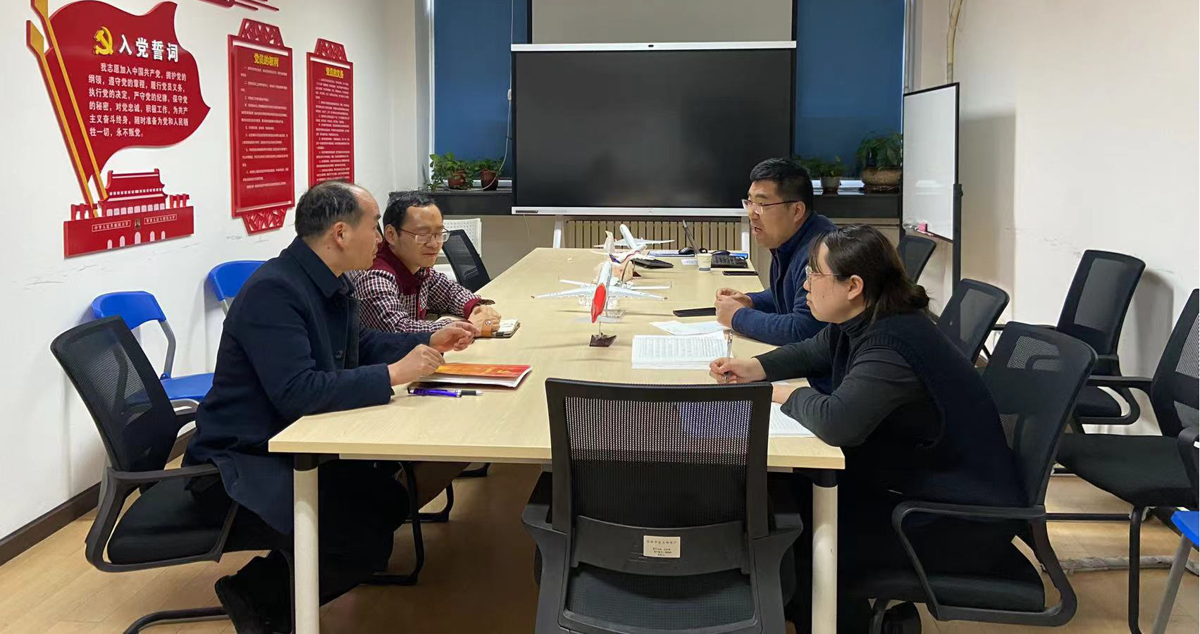 参会各支部组织委员按照要求对教师党支部、民航研究公司党支部和机关党支部的活动记录表开展了第四季度交叉检查,并对发现的具体问题开展了讨论,并对各自在日常支部活动组织,活动记录本撰写中的经验和心得进行了交流。易主任指出了各支部在党史学习主题生活会理解上的偏差,并对具体记录工作进行了指导。