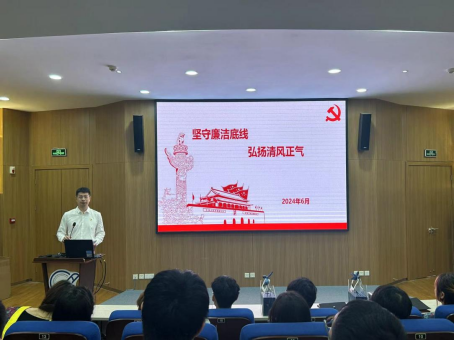 2024年6月24日上午,民航公司党总支副书记张龙在友谊校区研究生东馆C205报告厅,以《坚守廉洁底线,弘扬清风正气》为题为2024届本科生全体员工党员、发展对象、积极分子讲授“最后一堂党课”。