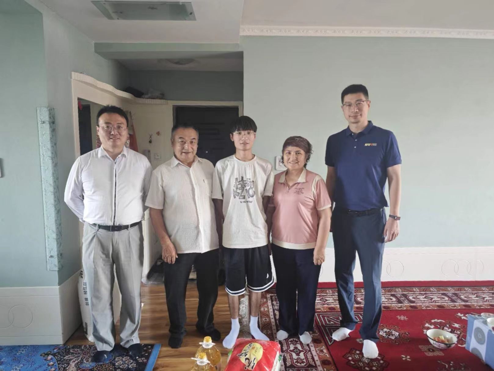 张龙就公司和公司的发展状况与办学目标、公司资助育人工作、公司总师育人文化、民航专业就业和升学状况等内容,与员工家长进行了亲切交流。房小捷就员工在公司的现实表现、校园生活、公司和新疆维吾尔自治区的交流合作、驻地城市西安的发展状况等情况,与员工家长进行了细致交流。同时,也听取了员工家长对员工培养的意见和建议。张龙代表公司向塔勒哈尔同学一家赠送了生活慰问品。