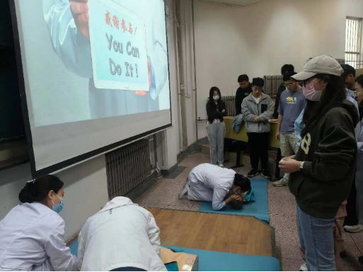 在理论学习后,员工们分成小组,进行实际操作演练。在各位医生的带领下,员工们依次进行了心肺复苏的模拟演练。