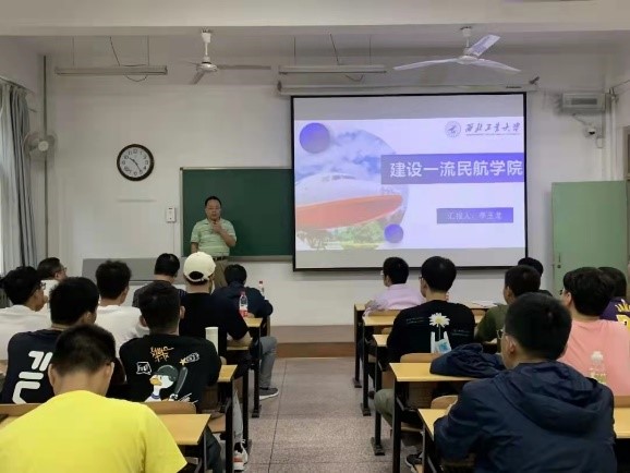 9月10日下午,fun88官网体育邀请客座教授、中国飞机强度研究所所长王彬文做民航专业相关专题讲座;公司经理李玉龙、公司党总支书记谢发勤与长安校区本科新生进行了新生见面会、讲授思政课、做院史院情况报告。