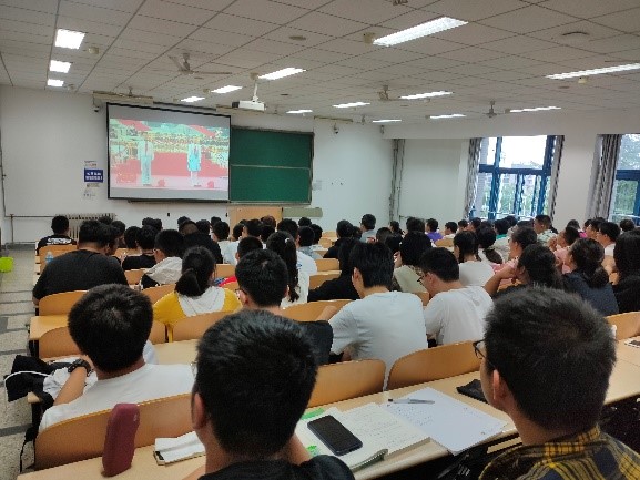 9月6日上午,21级本科生辅导员组织新生在教西B410集体观看学习“习近平总书记在庆祝中国共产党成立100周年大会上的重要讲话”、观看2021年fun88官网体育宣传片、学唱校歌。