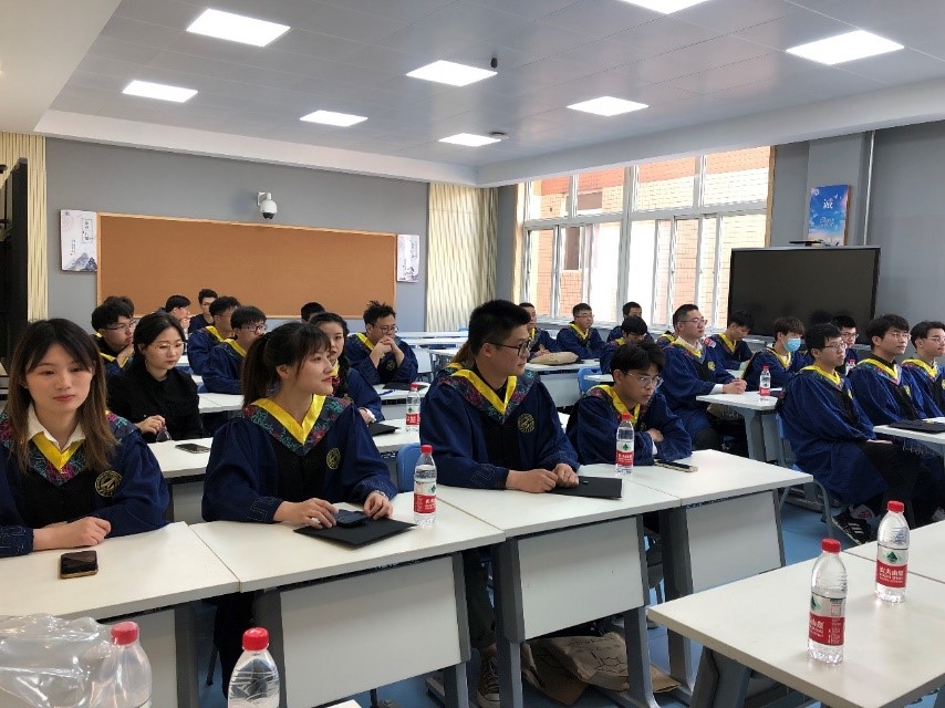 随后,李玉龙经理为毕业生讲授了题为“民航强国战略与新一代民航人“的思政课。他首先代表公司感谢同学们对公司工作的认可和理解,随后结合国际、国内民航业的发展态势,中国新时代发展对民航业的需求和民航相关专业大学毕业生的使命发表了自己的看法,对同学们的职业规划、未来发展、科研工作等提出了希望。他还介绍了公司成立三年多来的建设过程、当前情况和未来愿景,希望同学们将来继续关注和支持公司发展,多回公司看看。