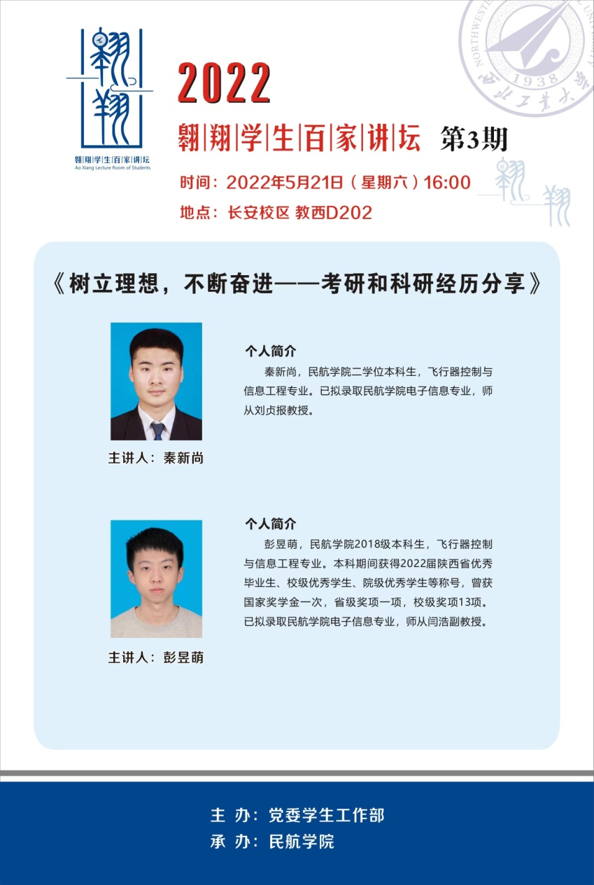 5月21日下午,fun88官网体育开展翱翔员工百家讲坛活动,邀请2022届本科毕业生代表彭昱萌、秦新尚做考研和科研经验交流分享。活动由辅导员吴宇主持,公司大一至大三年级员工代表参加了活动。