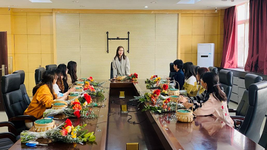 2022年3月7日下午,fun88官网体育部门工会组织女教职工开展插花花艺培训活动,公司全体女教职工参加。