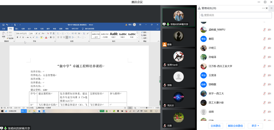 张晓化首先介绍了“做中学”卓越工程师培养课程建设背景、出发点、教学方式等内容,并初步将课程分成“飞行器设计实践”“结构强度”“飞控系统”“复合材料”“失效分析”“电动推进”六大模块,并动员老师们围绕其自身专业,组建课程团队。